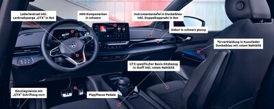 Freuen Sie sich auf ein großzügiges Raumgefühl mit vielen sportlichen Details. Die roten Ziernähte der GTX-Stoffsitzbezüge finden sich auch an der Instrumententafel in „X-Blue“ und in den vorderen Türen im selben blau-roten GTX spezifischen Farbcode wieder. Die Einstiegsleiste vorne und die Lenkradspange inklusive GTX-Schriftzug manifestieren optisch Ihren Einstieg in eine neue, sportliche Generation der Elektromobilität.